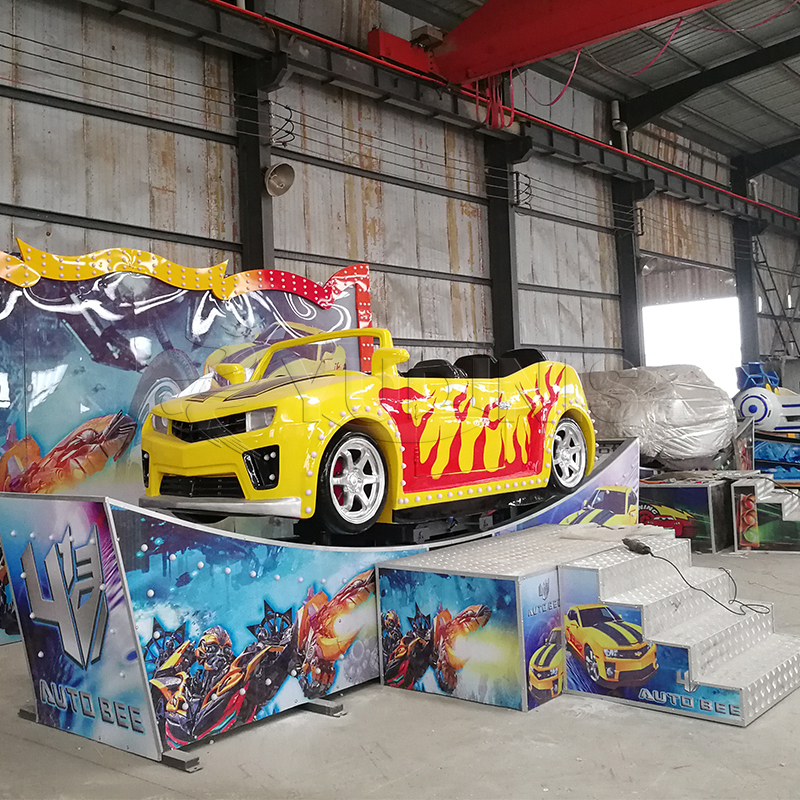 The circular turntable under the cabin rotates steadily on the track and the model car slides along the track smoothly, accompanied with wonderful music and flashing colorful lights, so that passengers ride on the flying car will feel like surfing on the surging ocean, full of excitement but without thrilling or fear.